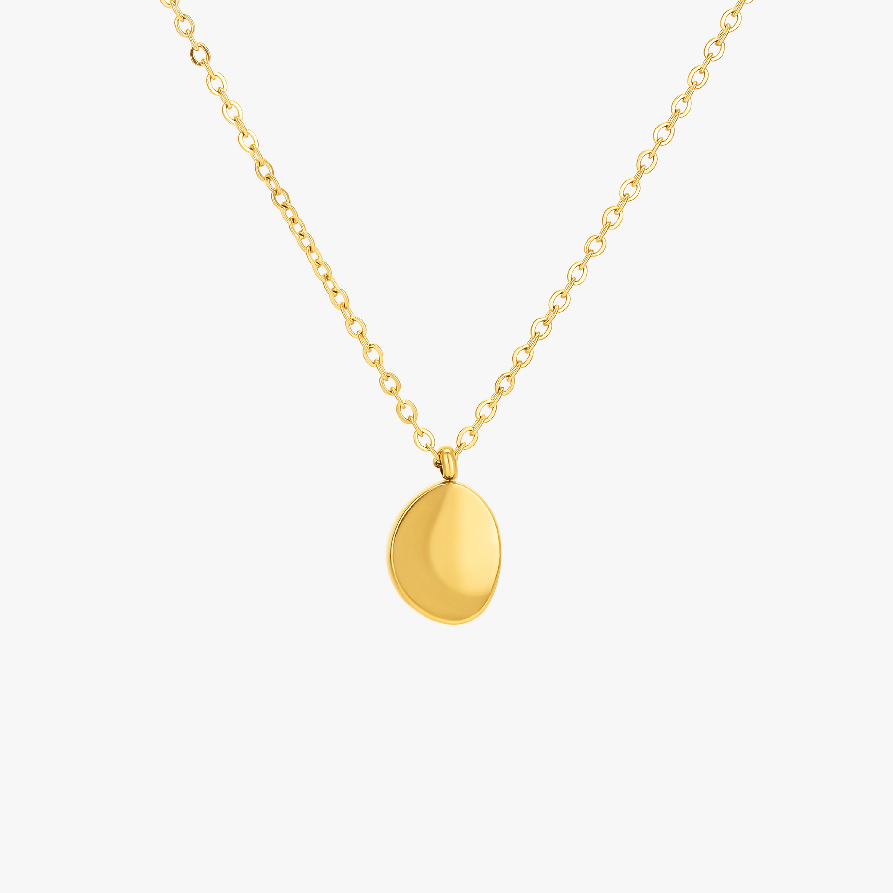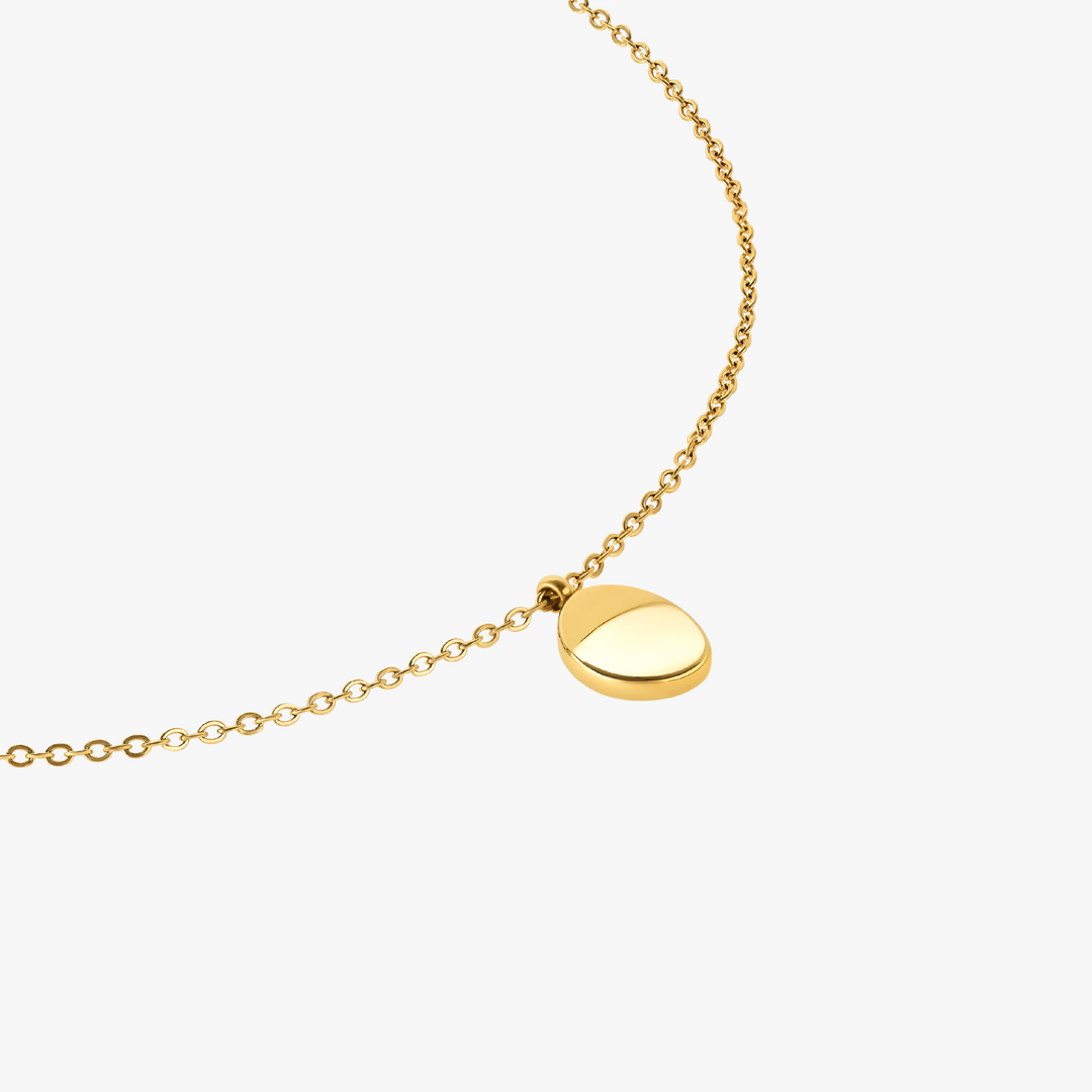 A minimalist necklace with a small, organic oval-shaped pendant is a unique way to express yourself and mark a milestone or occasion, carrying it with you every day.