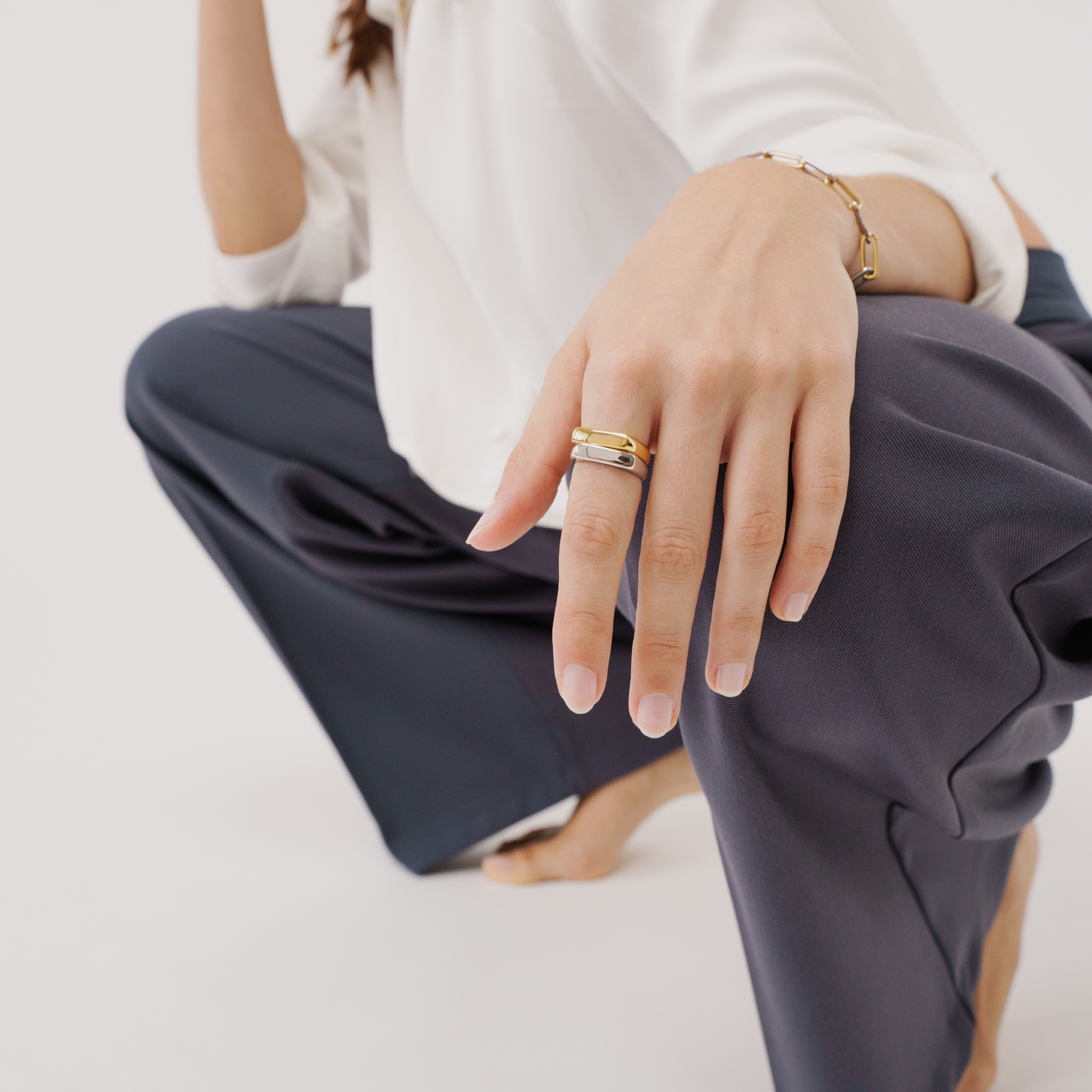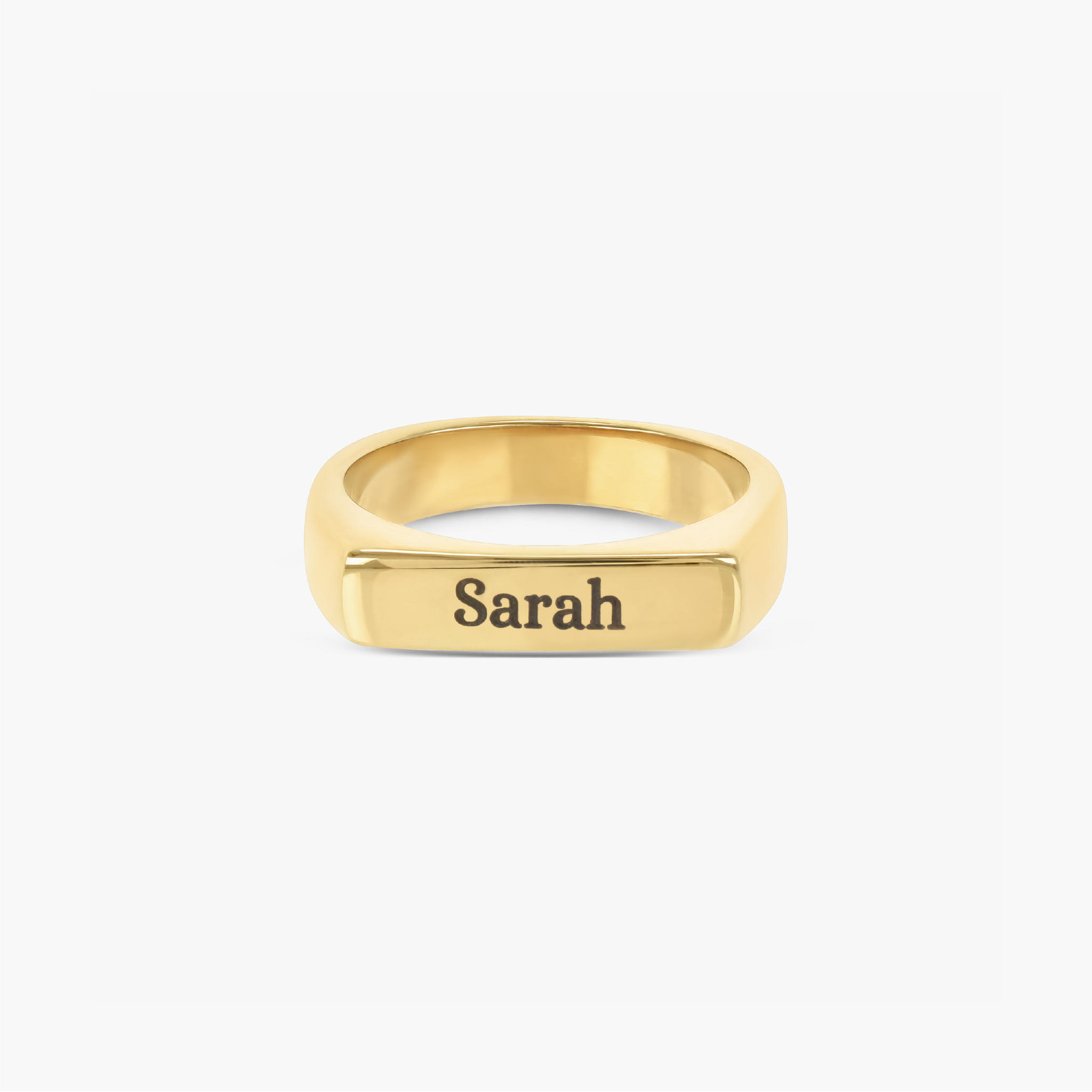 Stamp rings are a forever classic. This modern and timless ring can be layered with other rings but also can be worn alone. Engrave with a special name or date and make it even more special.