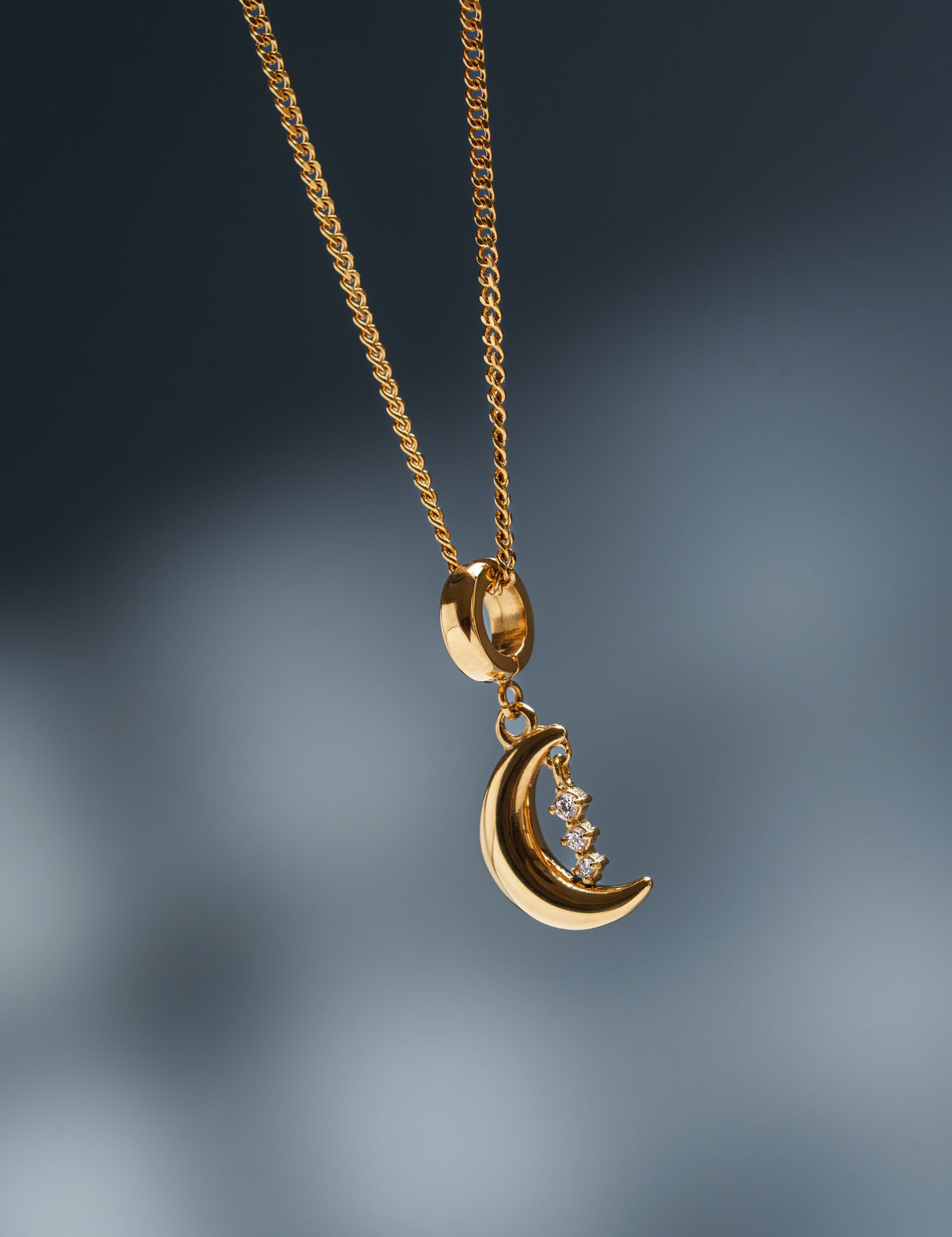 Personalize as suas peças, quer sejam colares ou pulseiras com o click charm Lua. Os três cristais dão um toque a esta peça, tornando-a ainda mais delicada.