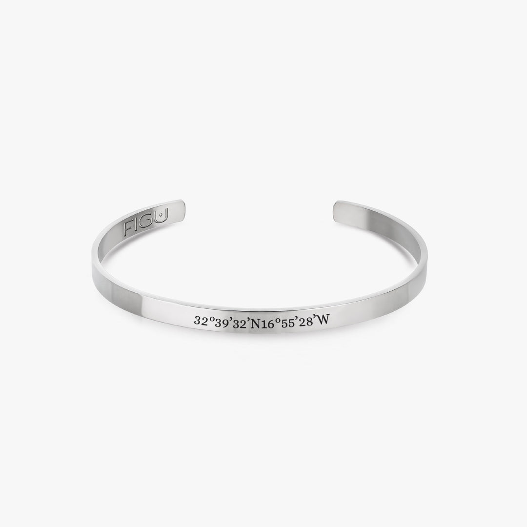 Our Kai Bracelet is the perfect piece to engrave the coordinates of a location where you had those special memories, a date that means a lot, your name and your soulmate or a meaningful phrase/name.