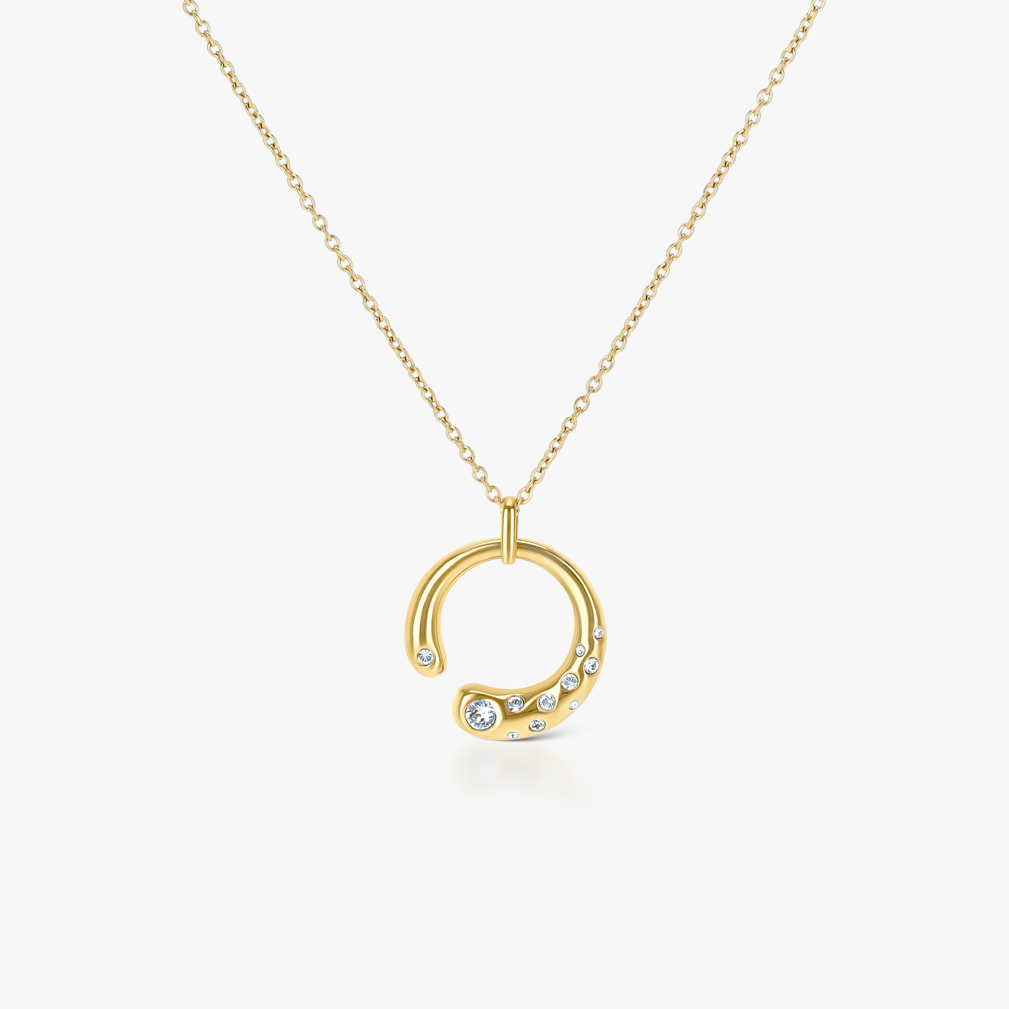 A simple yet sophisticated necklace designed as soft, unfinished curved, adorned with different sizes of crystal stones. This necklace is very flattering which gives a simple yet modern look. For a perfect combination, match it with the several pieces in the collection.