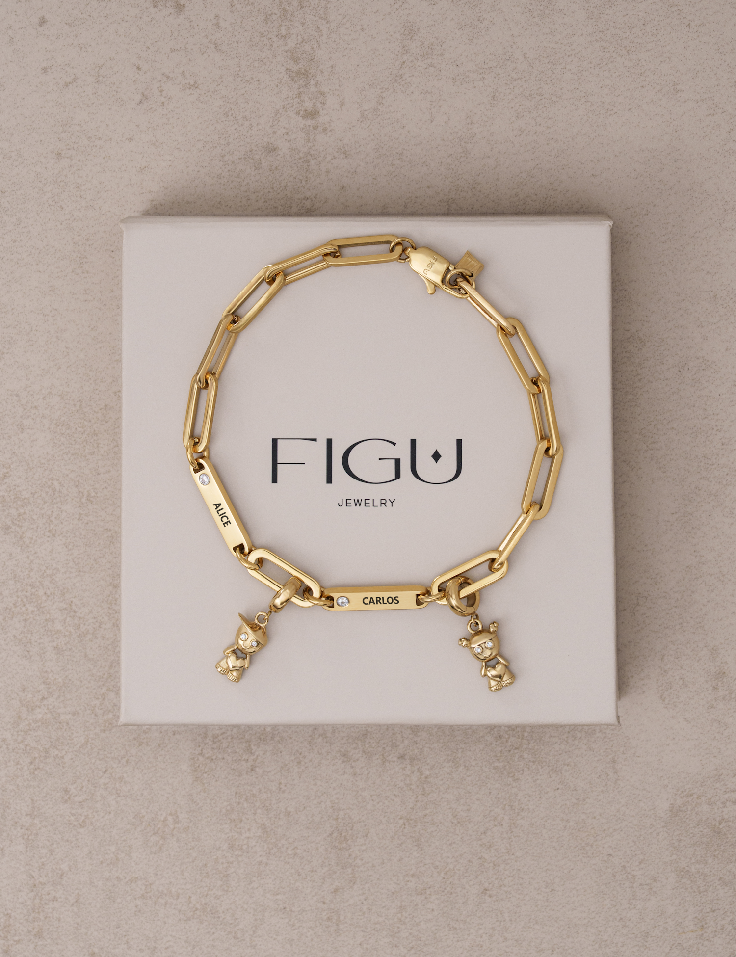Adicione um click charm às suas peças favoritas com os nossos charms de menino ou menina. Pode colocar em colares, como o nosso colar Mati, Magui, Ara, Ema ou em pulseiras como a nossa pulseira personalizada Matilde ou na sua malha mais simples, como a Mati.