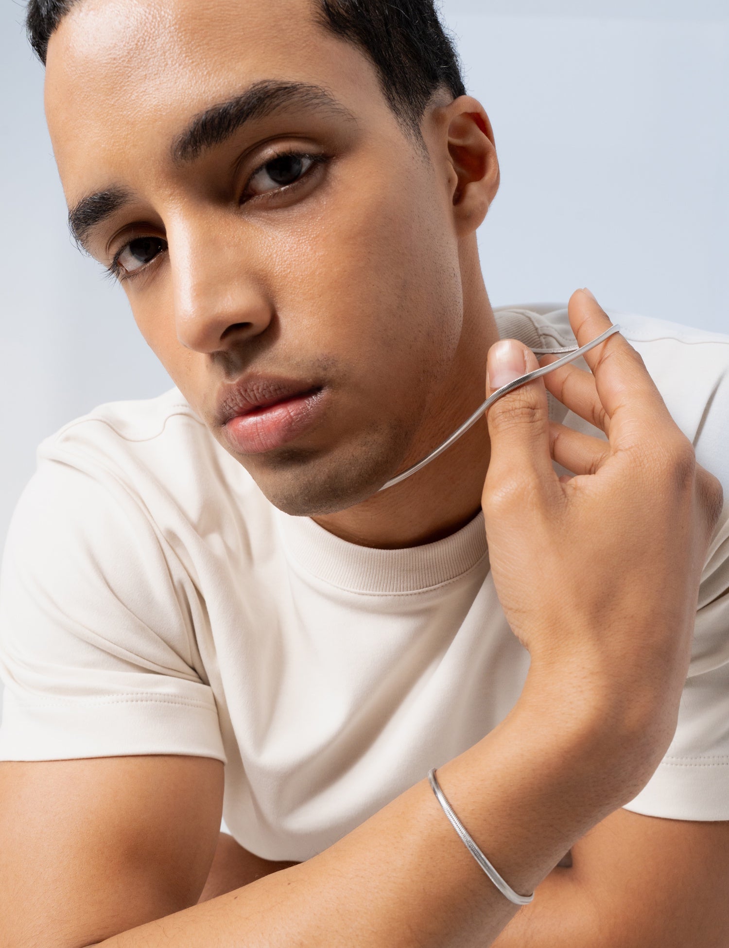Este colar em forma de corrente de cobra é suave, elegante, com um visual muito suave, sedoso e brilhante. Atena é um conjunto clássico e arrojado, uma adição indispensável na sua coleção pessoal de jóias.