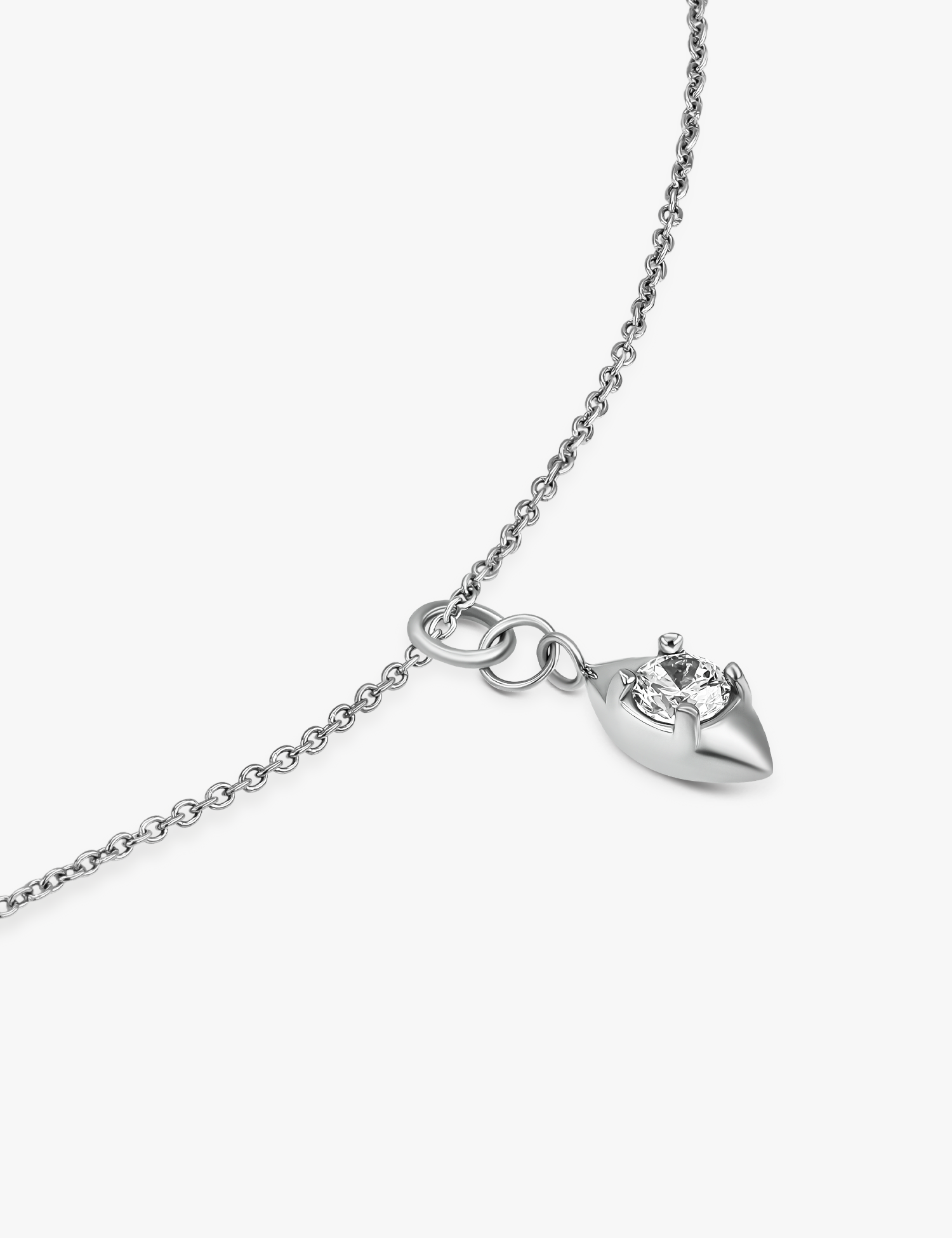 Um pendente fluído e elegante, marcada por linhas suaves e um cristal central que reflete a luz com delicadeza. O colar Flow adapta-se naturalmente ao movimento do dia a dia.